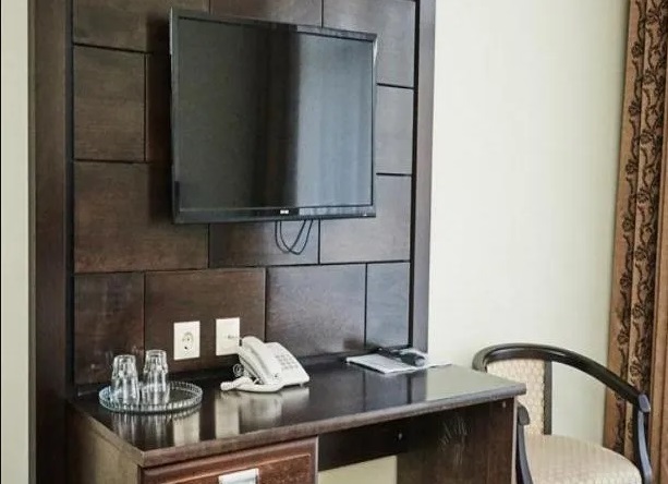 В номере: кровать «King-size», два телевизора, светильник, электронные замки, кондиционер, Wi-Fi, телефон, зеркало, кресло, тумбы, стулья, диван, вешалки, чайник, чайный набор, шкаф-купе